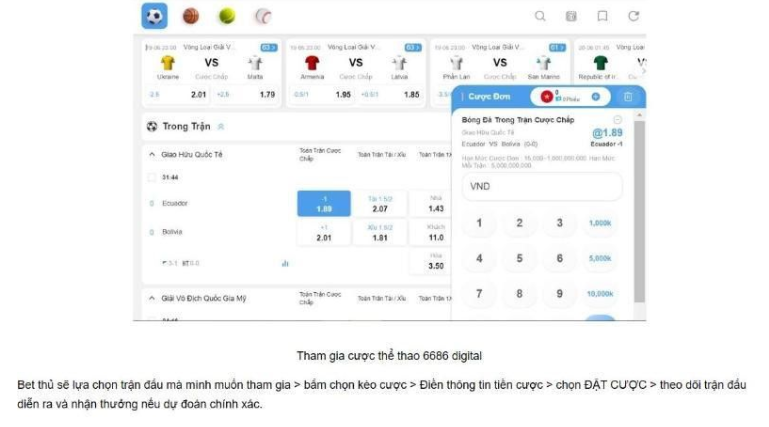 Dưới đây là hướng dẫn chi tiết hơn về cách chơi cá cược bóng đá trên nhà cái uy tín 6686bet: