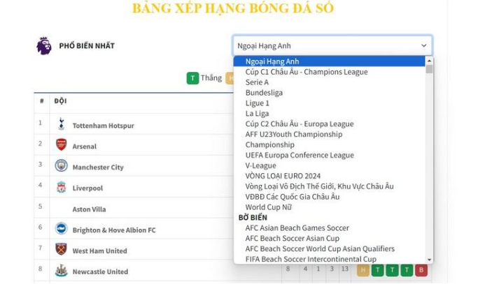Website cung cấp thông tin bóng đá tiện dụng